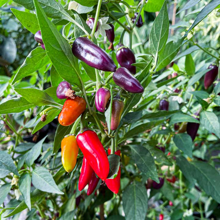 Skörda när frukten uppnått sin rätta färg – beroende på sort: röd, gul, orange, lila… smak och styrka varierar med mognadstid. Personligen föredrar jag att skörda när de precis börjar bli färgade, för att behålla lite friskhet och mildare hetta. Men för riktigt puristisk smak väntar jag tills hela frukten är mogen – då blir styrkan maximal.